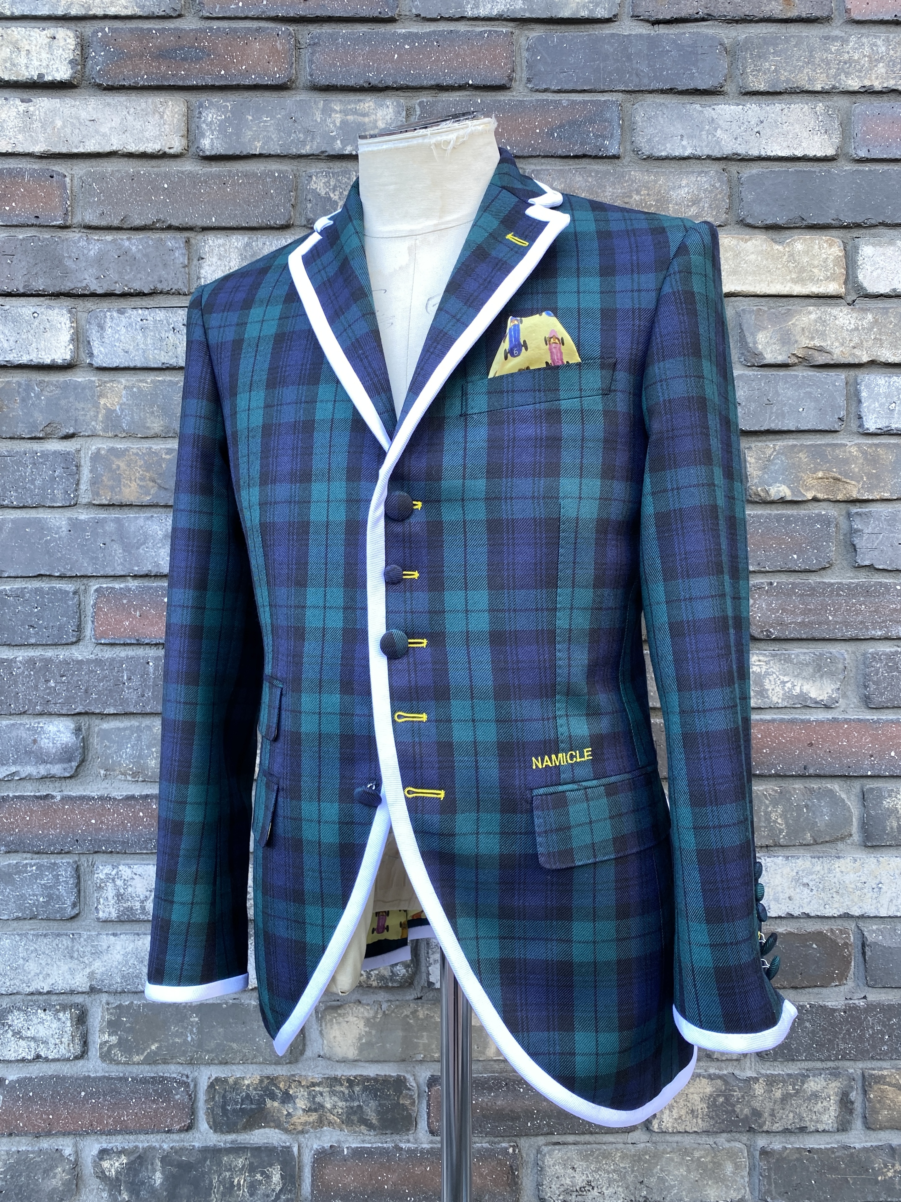最高にMODな、そしてクールなスクールテイストが薫る、そしてそしてLOUD GARDEN/RYOJI OKADAでしかできないに違いない「UKを代表する老舗マーチャントHarrisonsの名コレクションTartansにコンパイルされているBlack Watch素材でお作りしたジャケット」です。