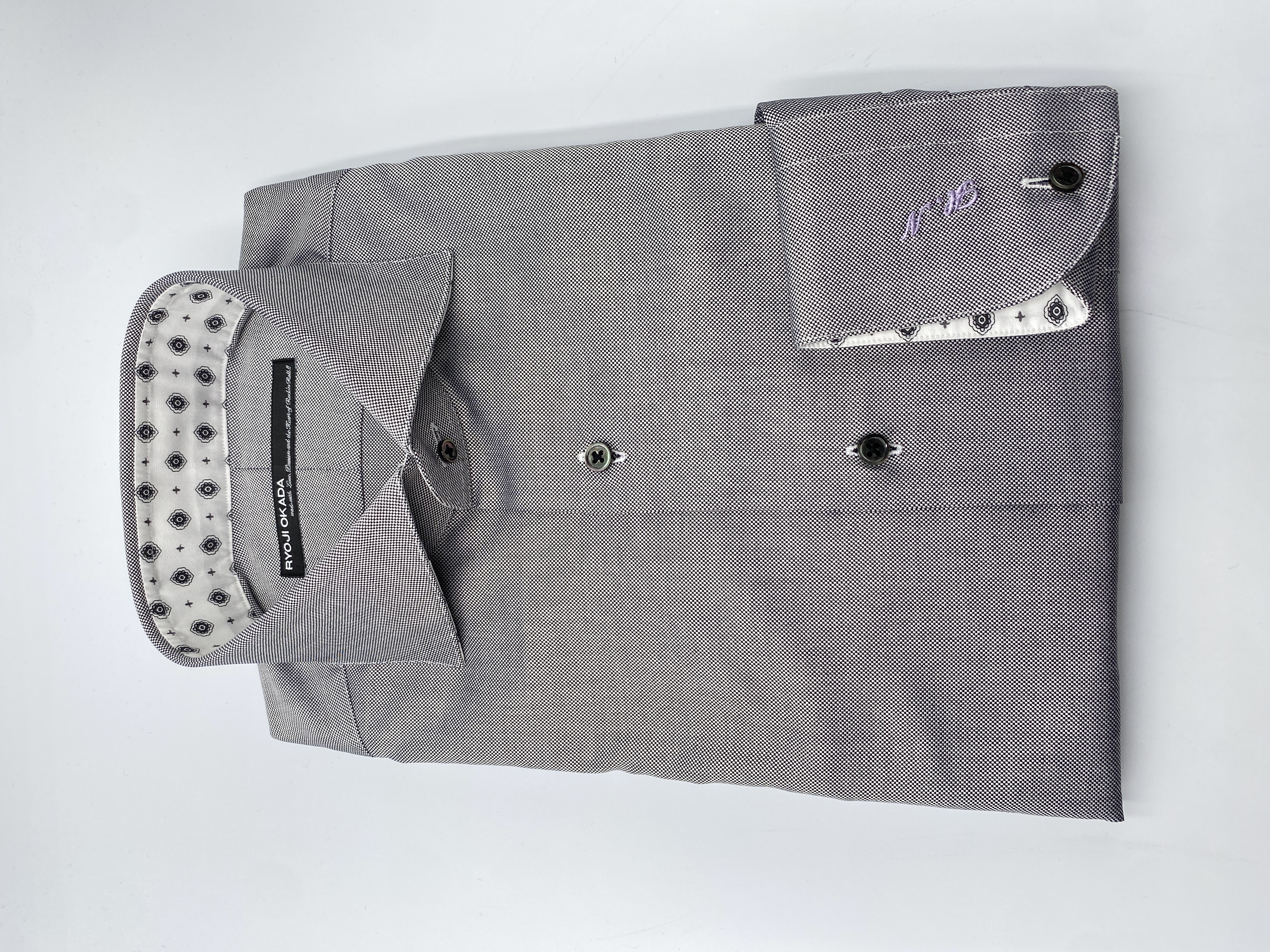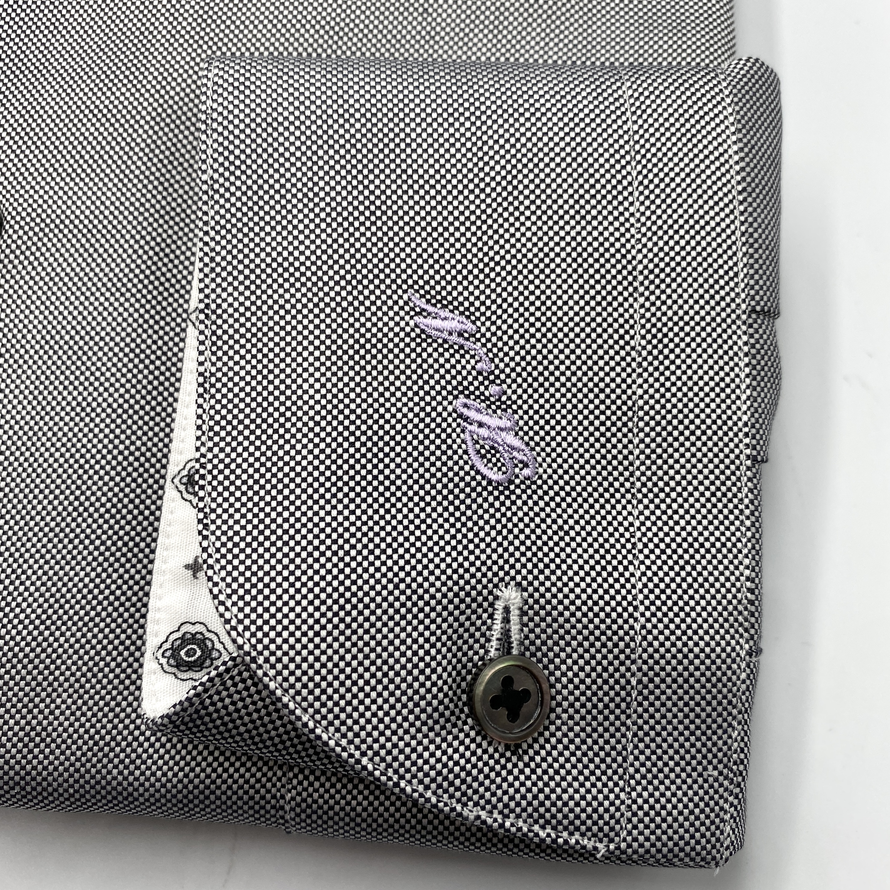 その他:左カフスにLavender糸&筆記体でイニシャル刺繍