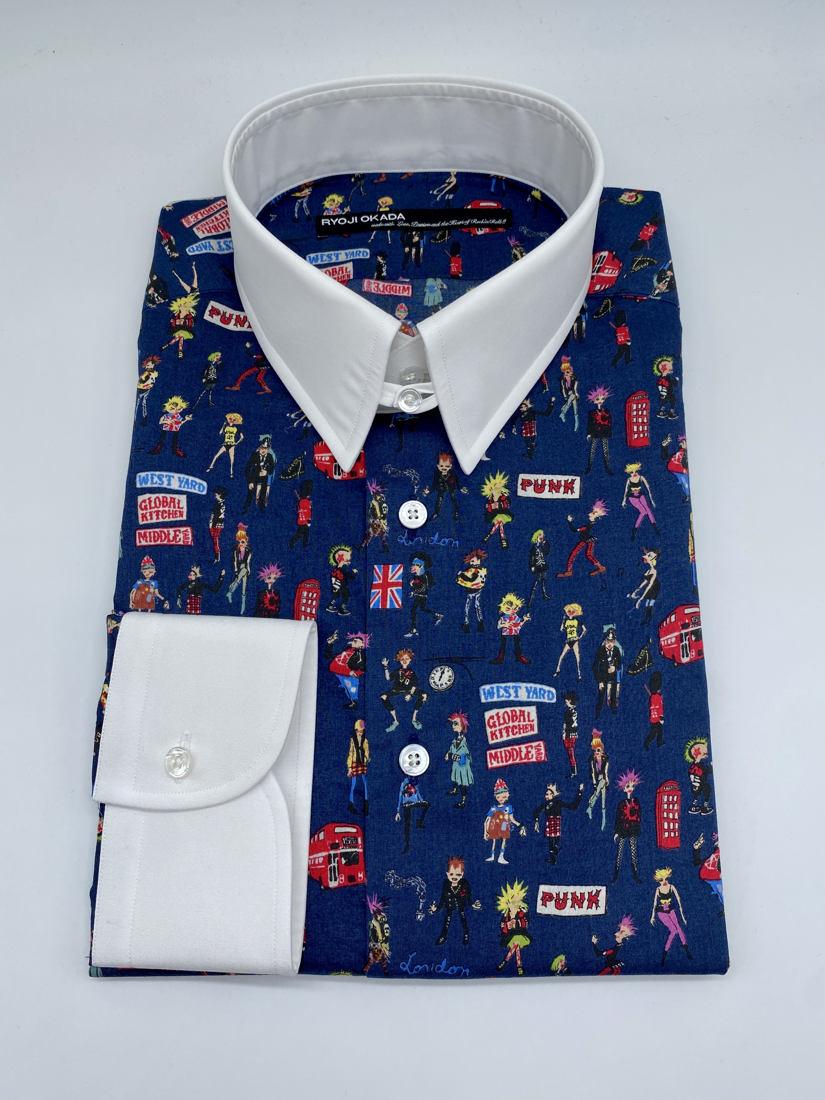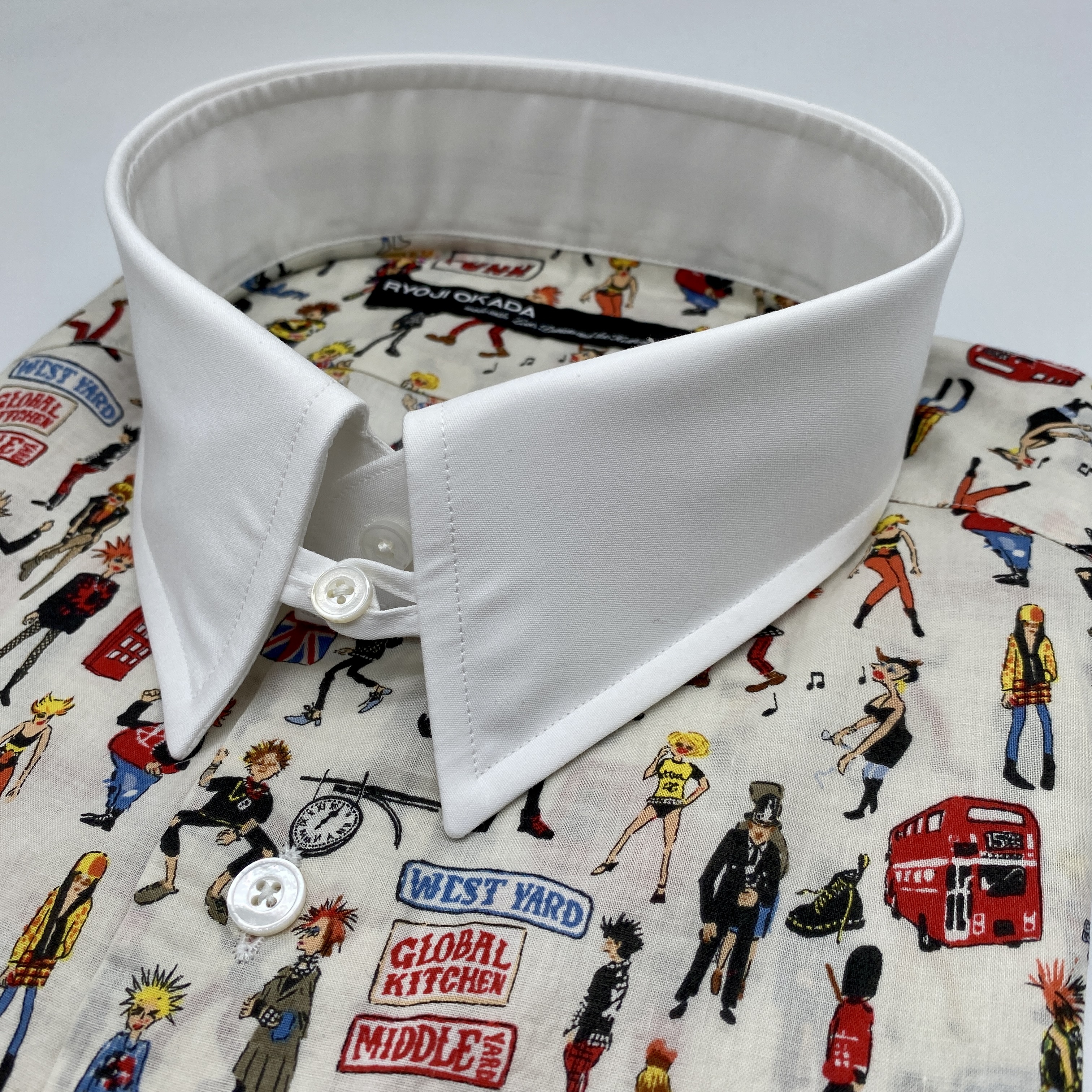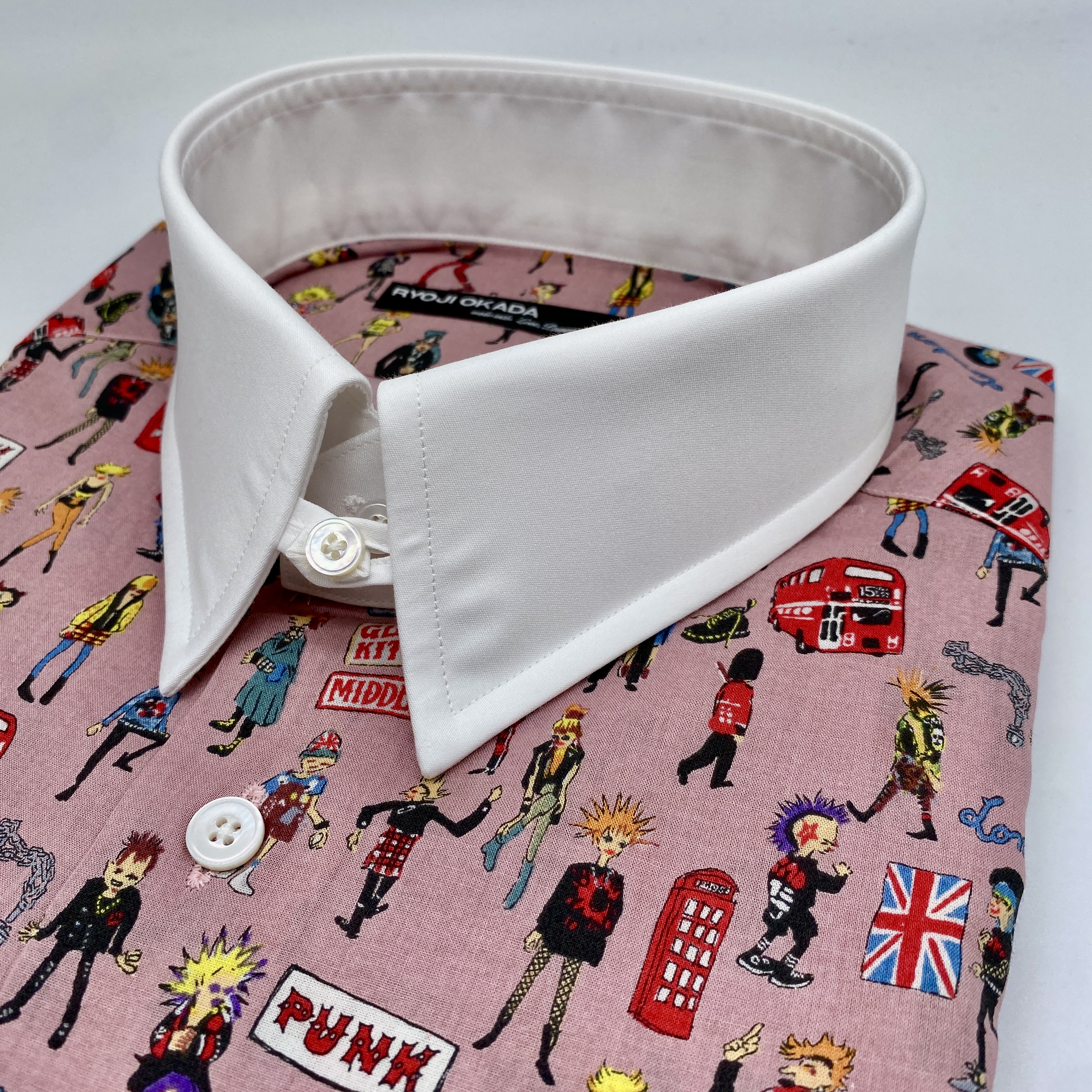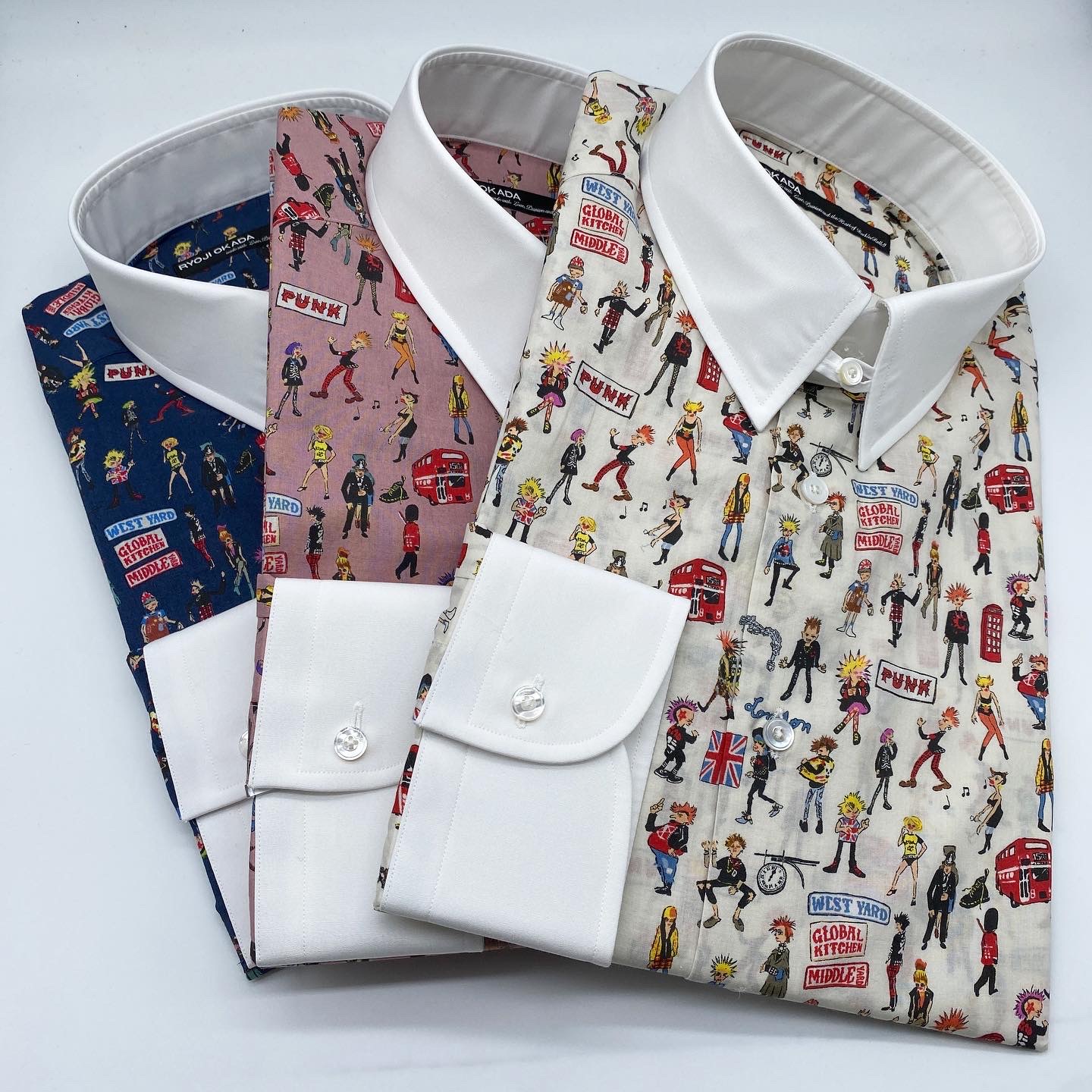ご覧の通り、LOUD GARDENが独自ルートで調達した他のテイラーさんでは取り扱いがほとんどないと思われる、そして昨シーズン:2023 Spring/Summerシーズンのヒット作となったPunk Rockプリント素材でお作りしたシャツ3枚です。