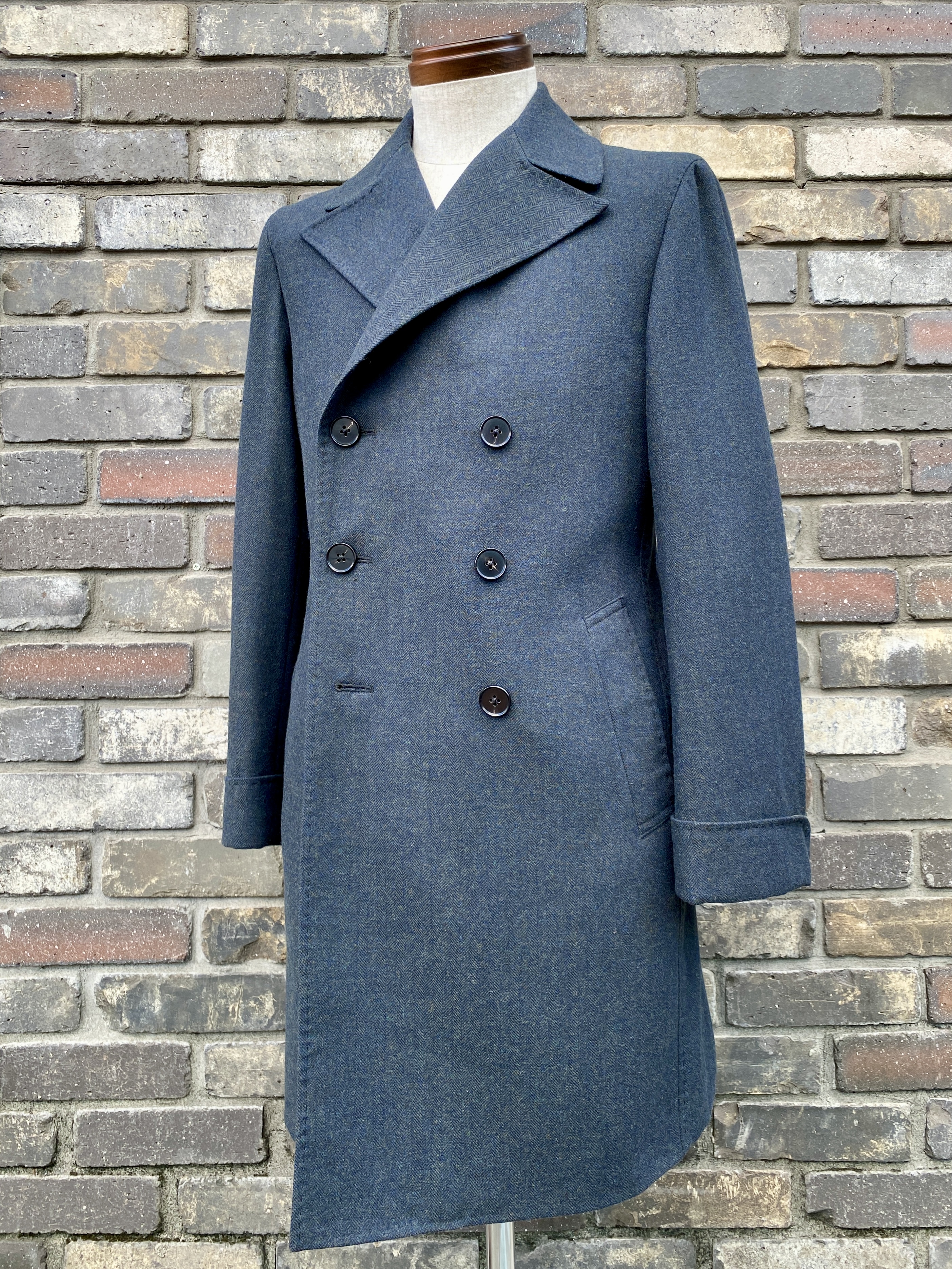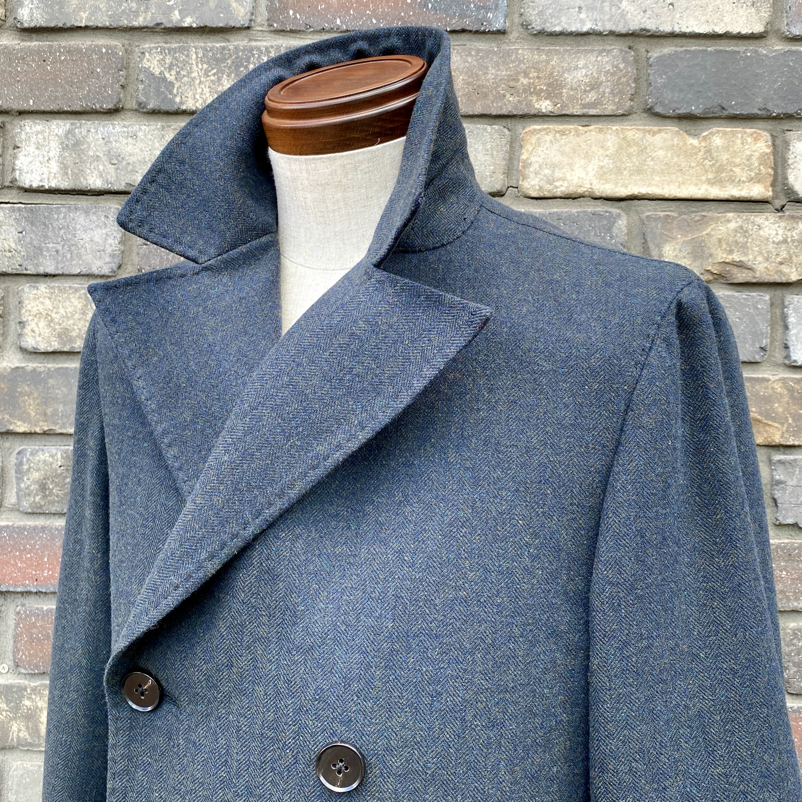 バンチブック紹介の際に僕も大絶賛したSustainable Woolen Tweed Jacketと名づけられた逸品・珍品でお作りしたダブルブレステッドコートです。