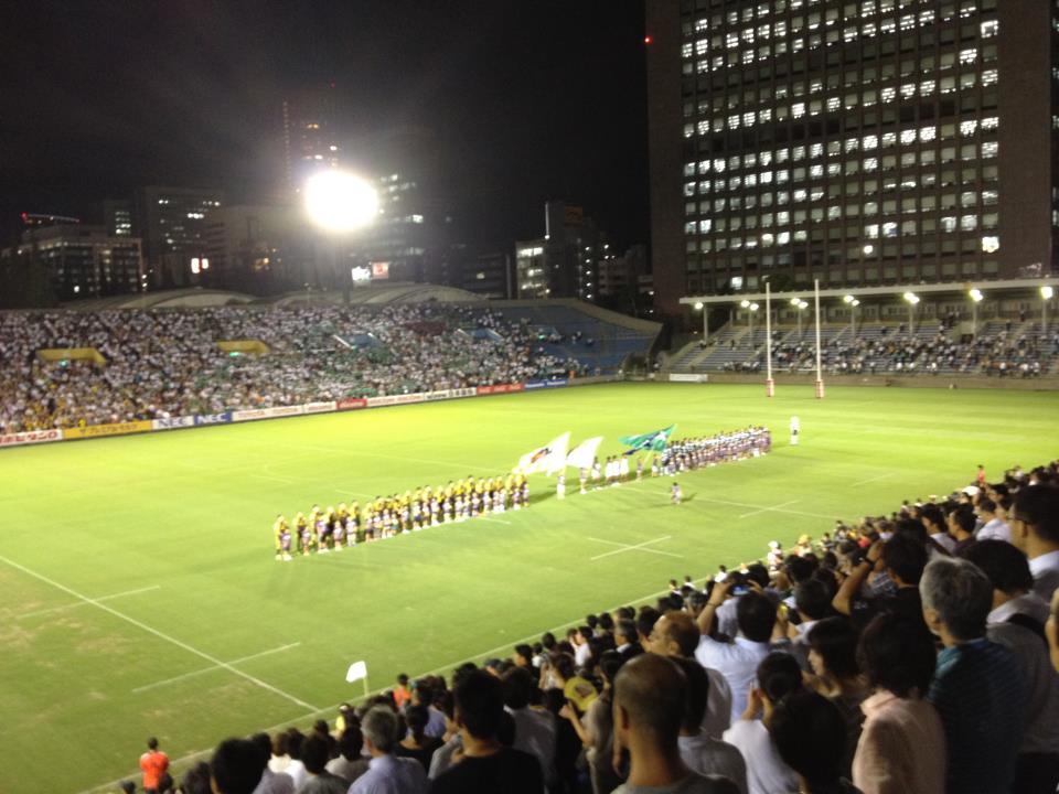初めて訪れる秩父宮ラグビー場でいきなり君が代、上がるな〜〜!!!!!!!