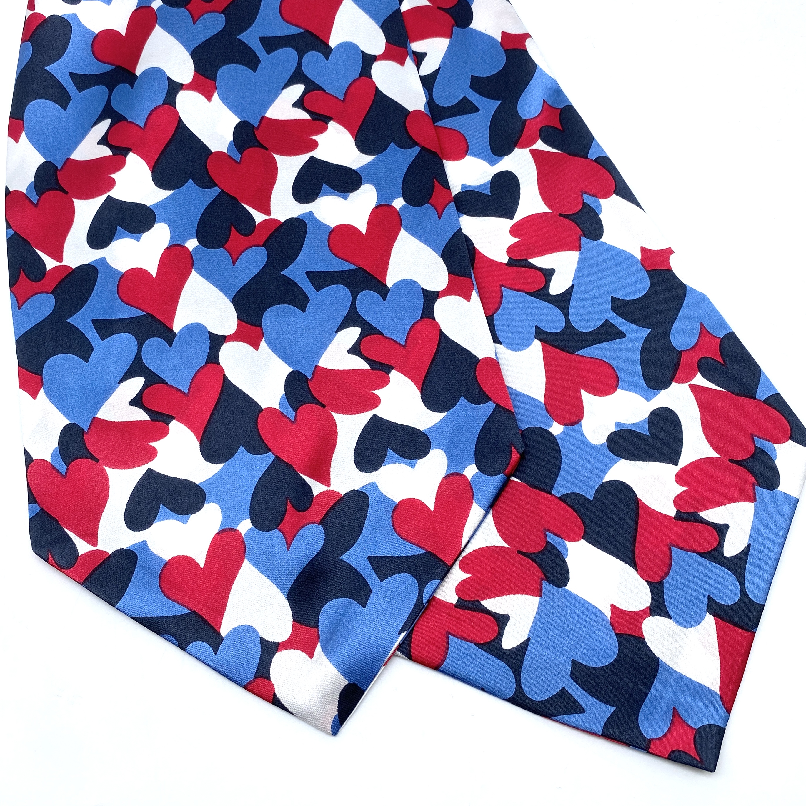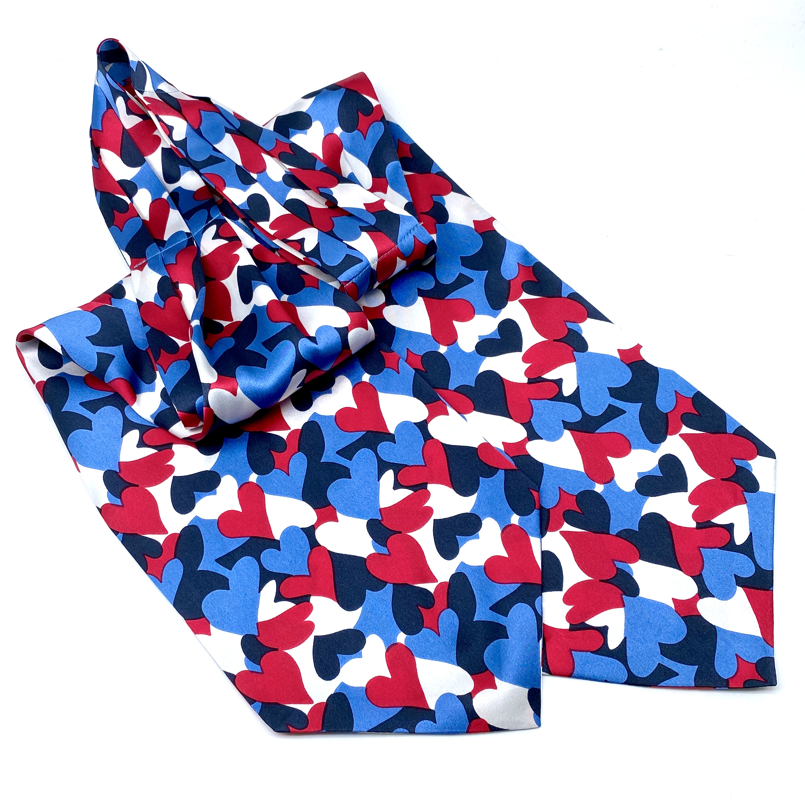 Very beautiful and elegant “♡ Camo” silk c/# red, white and blue ascot tie!