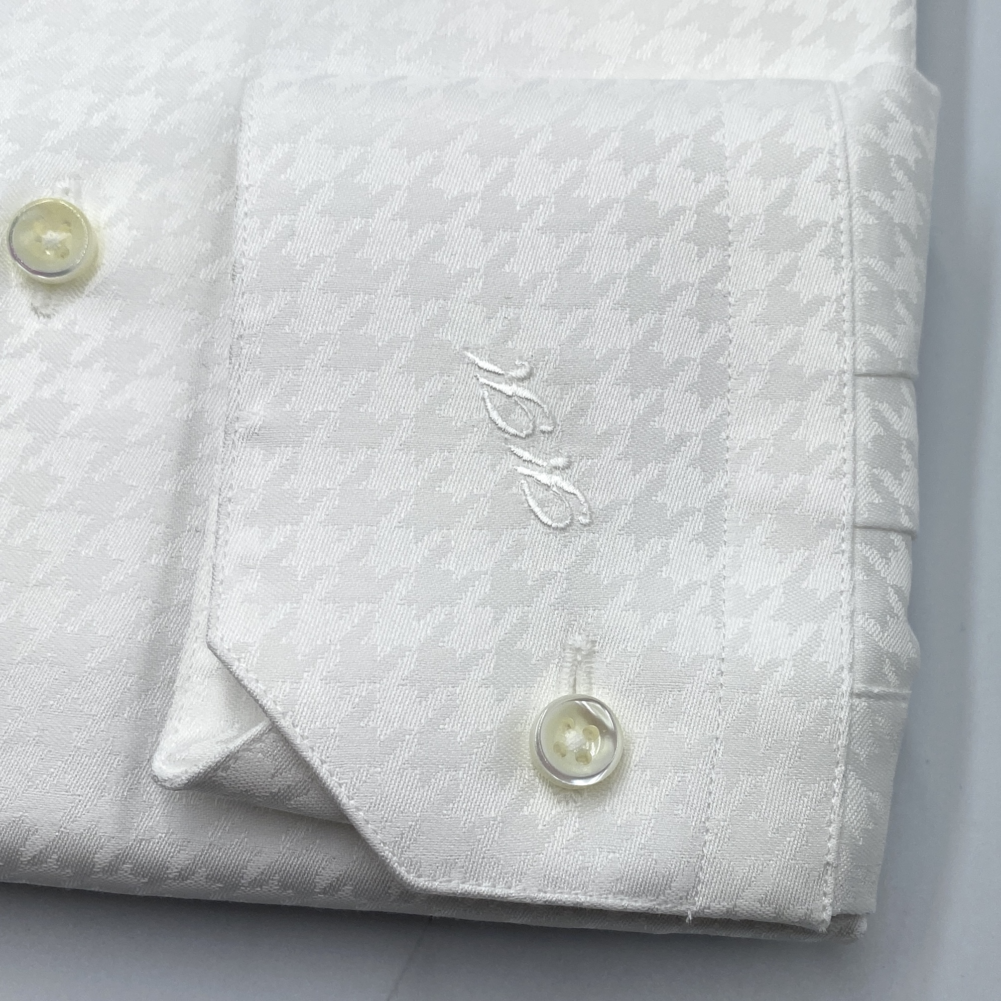 BookⅢにコンパイルされているハウンズトゥースジャカードのホワイト無地でお作りした1枚です。