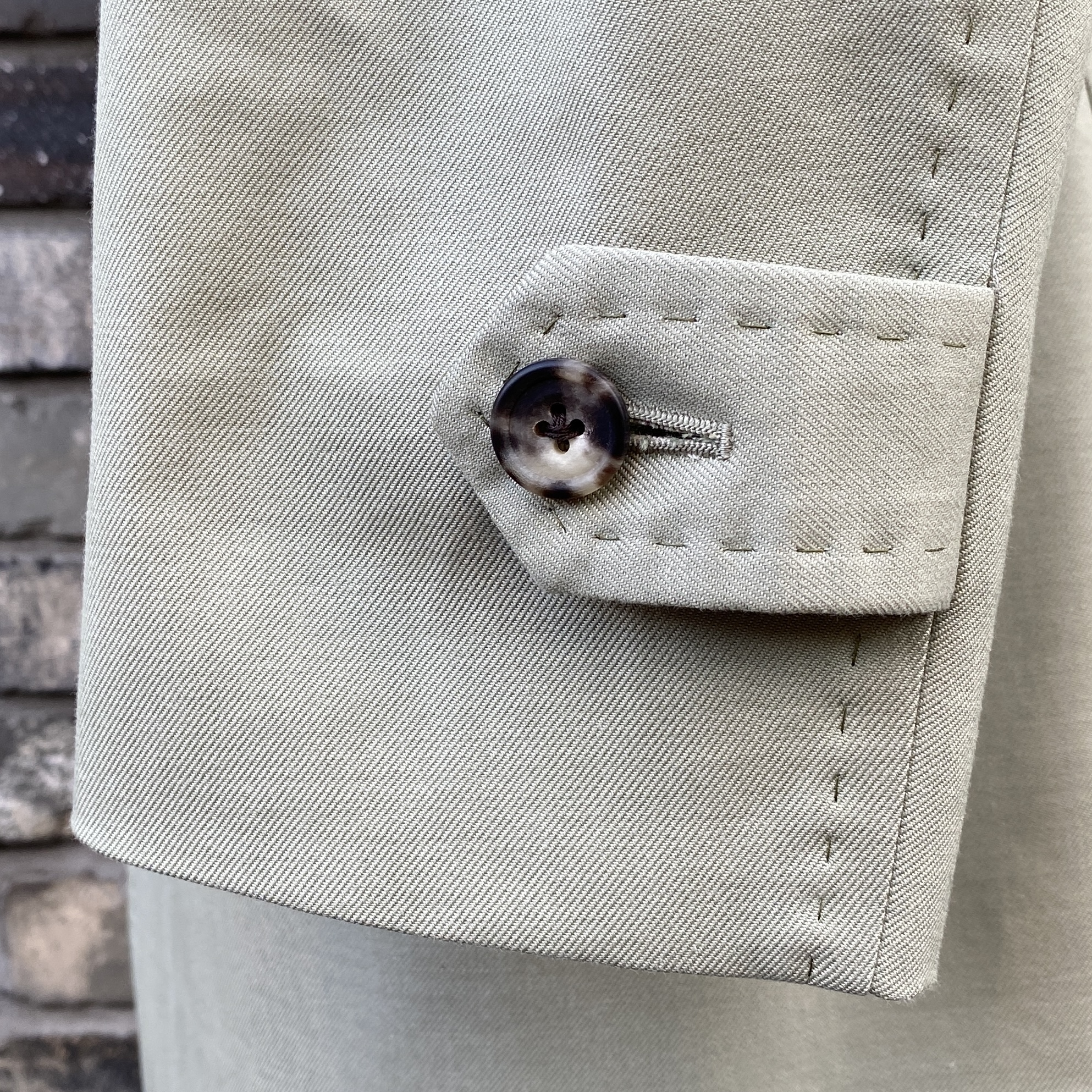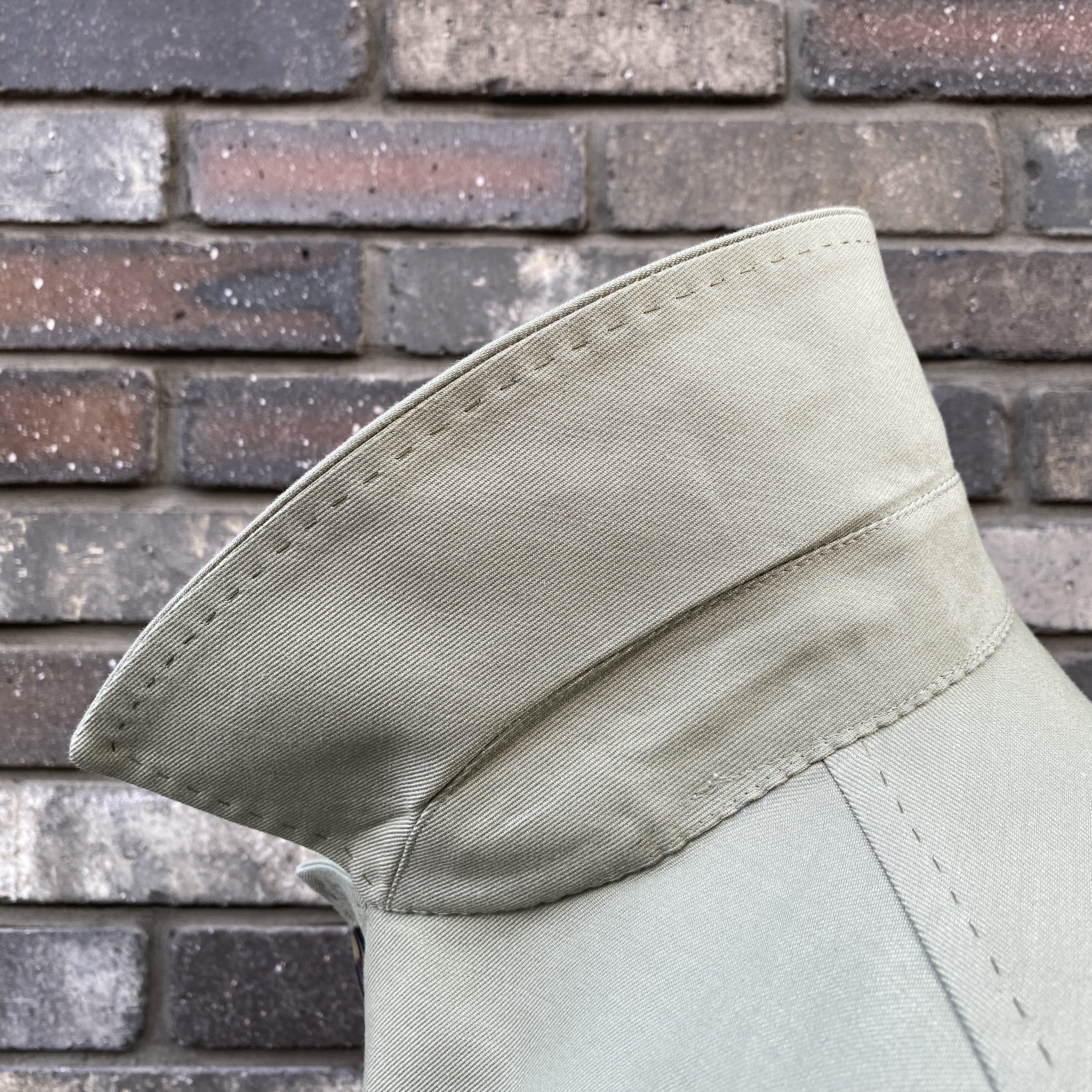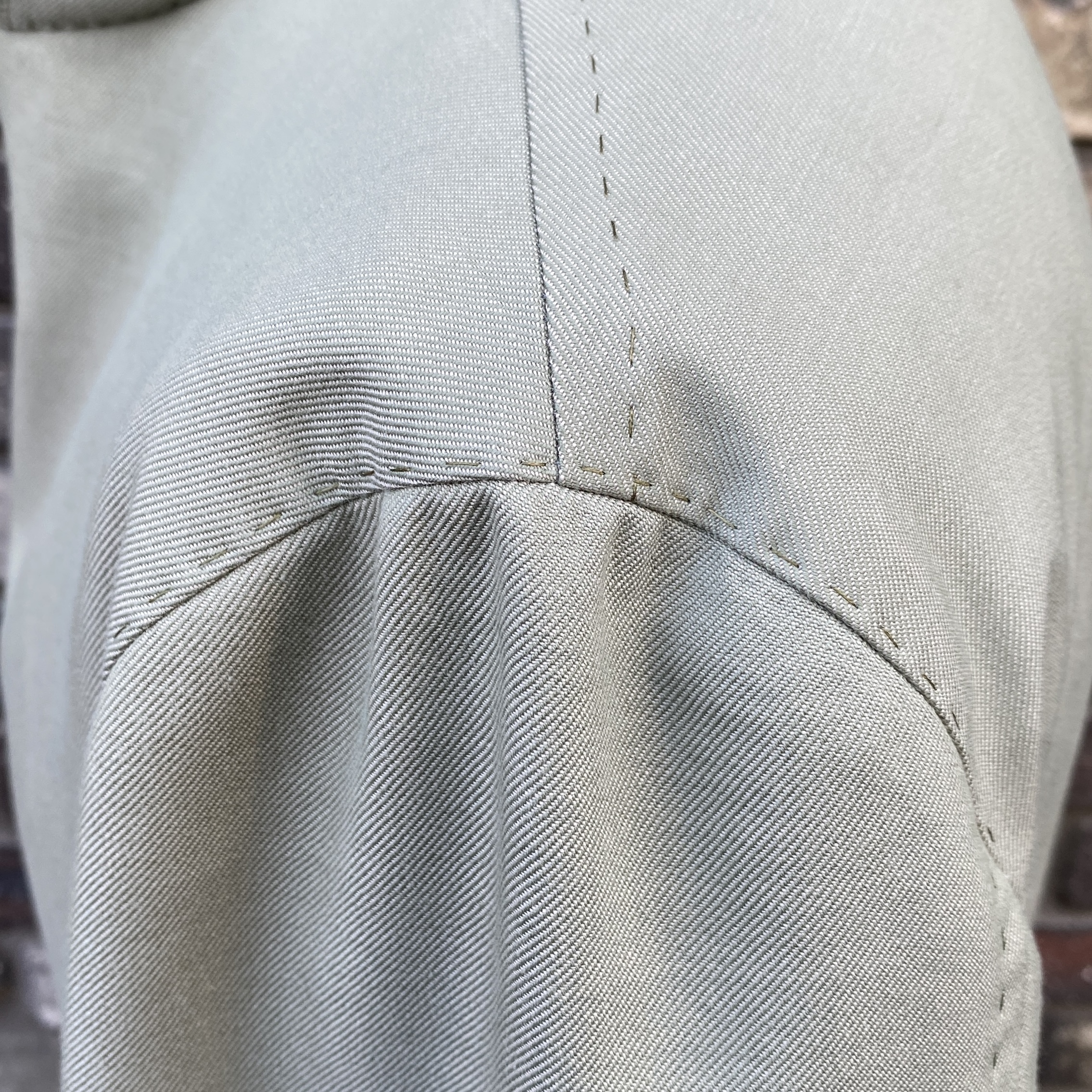 (洗練されていてとてもアーバンとはいえ)ミリタリースタイルの代名詞的カラーであるGreenなのでタブもミリタリーテイスト強めの「三角タブ + 山袖(上側の袖)どめ」にしました。