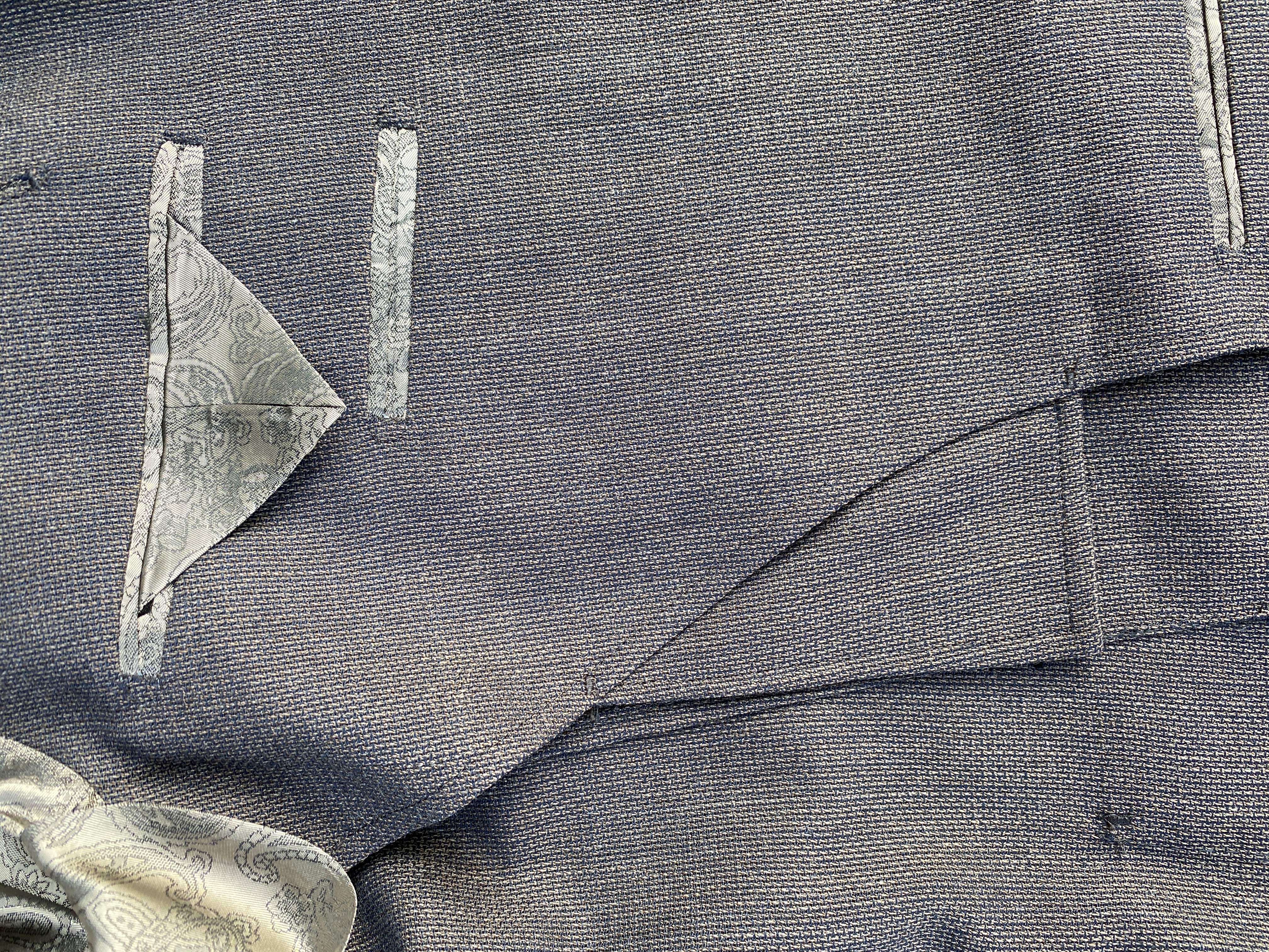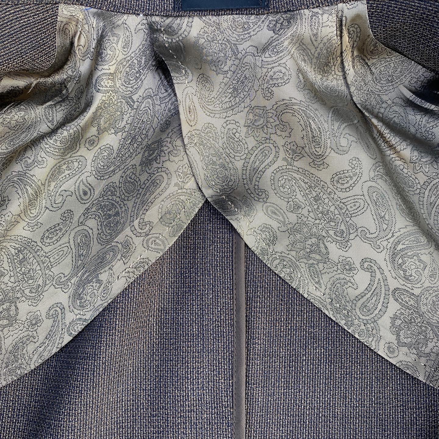 また、「ナイスアクセントになっているブラウンベージュのリアルナットボタン」「軽快な大身返し仕上げ」「クール&エレガントなペイズリージャカードライニング」「ピックステッチがキレイに入った観音開き仕様のバックライニング」といったオーダーメイドならではのこだわりたっぷりのディテイルも見逃せません!