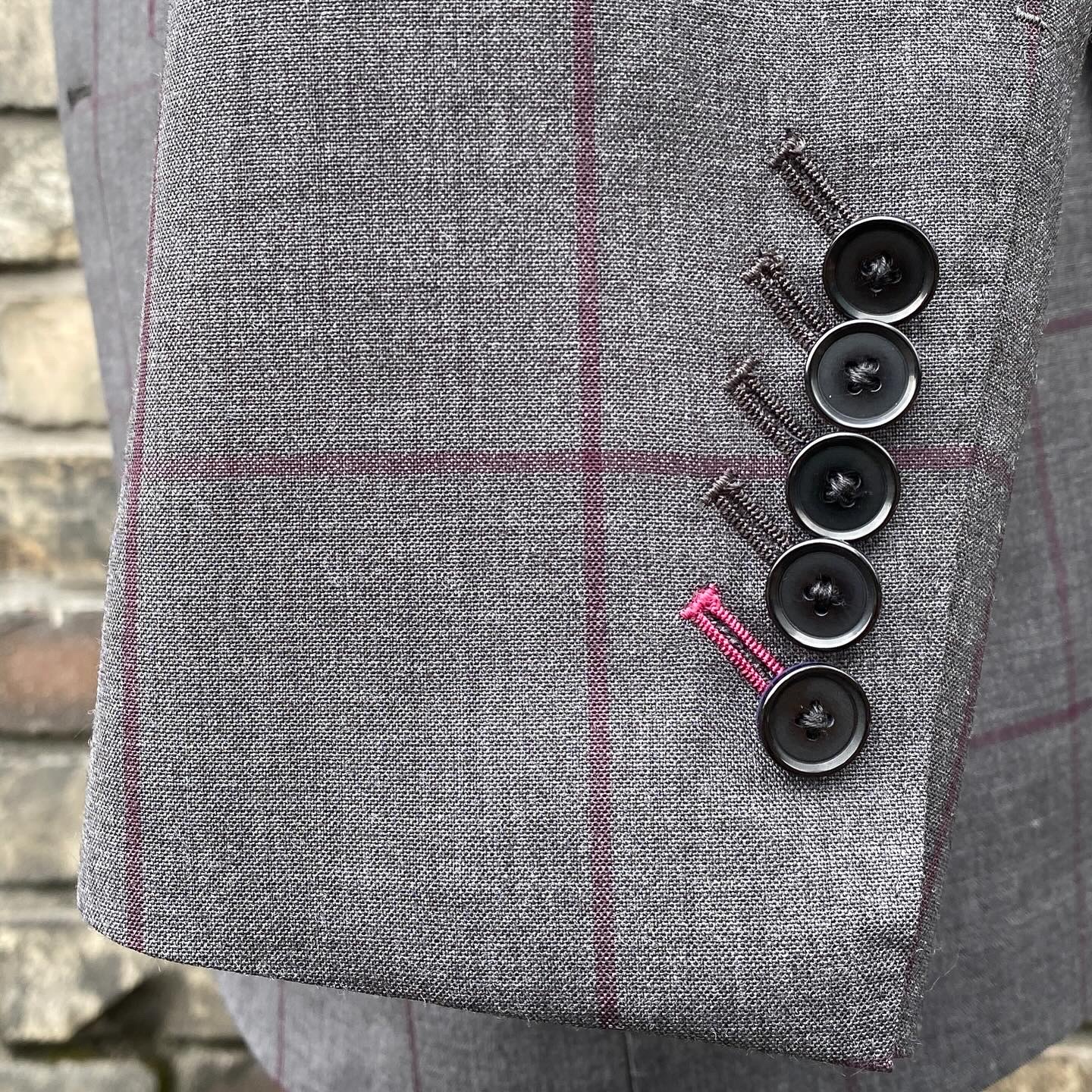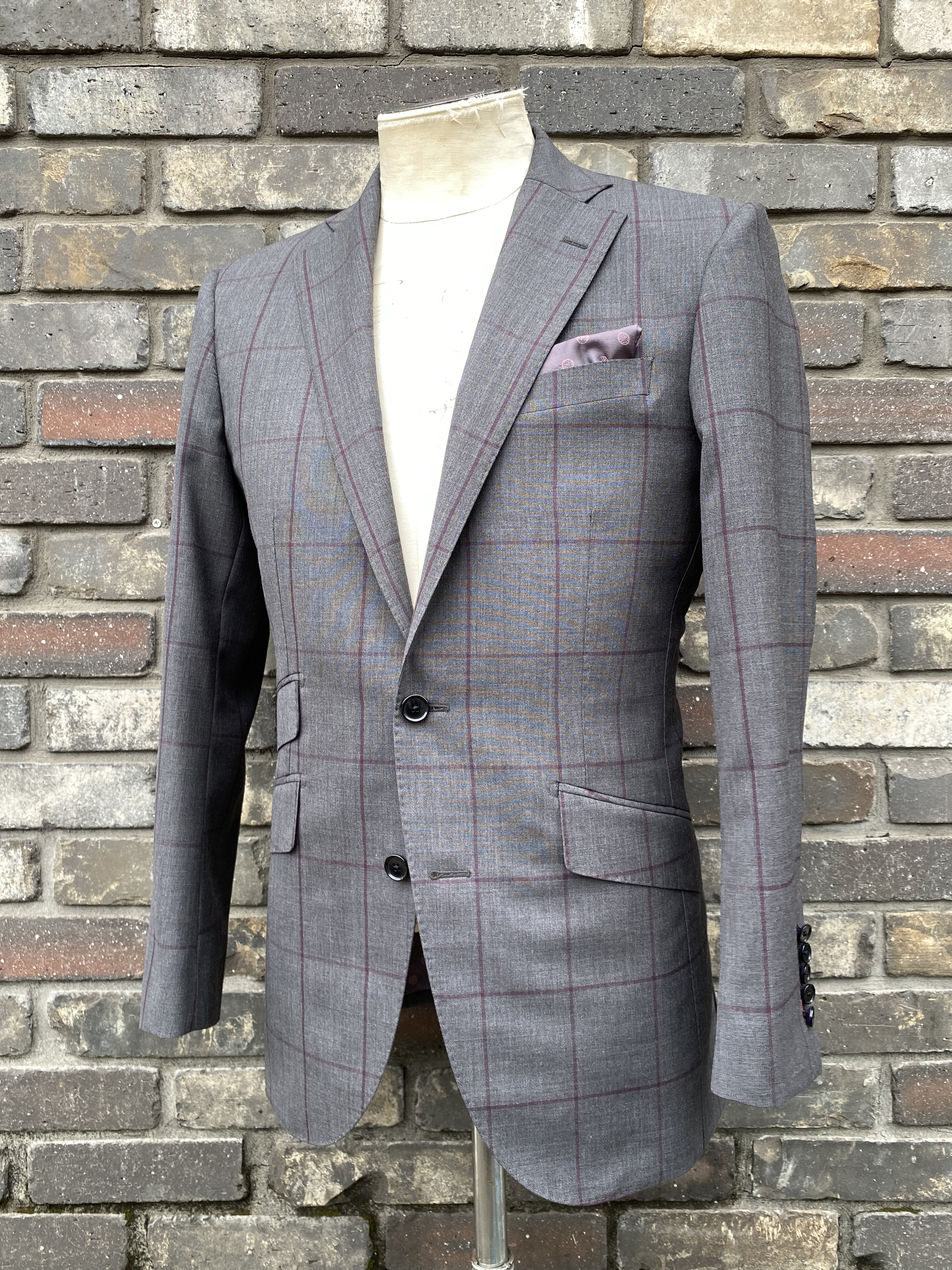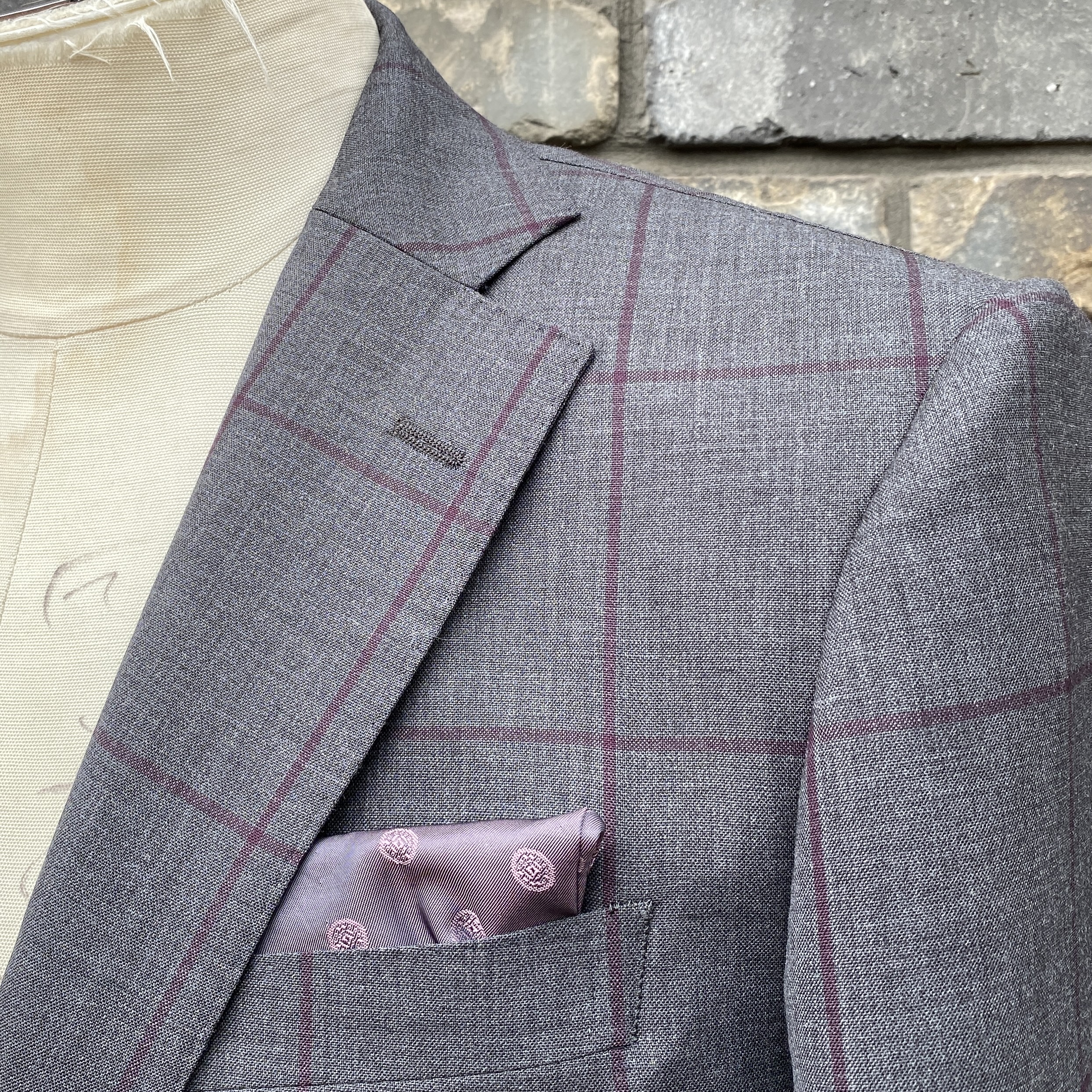 個性あふれるモダンクラシックな素材を得意とするイングリッシュミルDarrow Daleのウィンドウペーン素材でお作りしたスーツです。